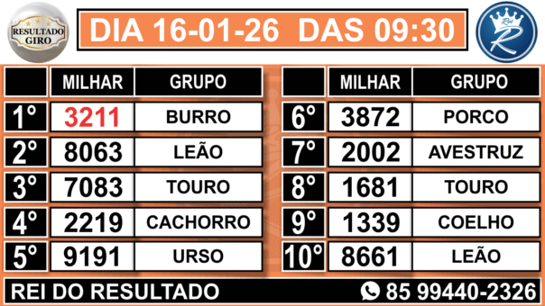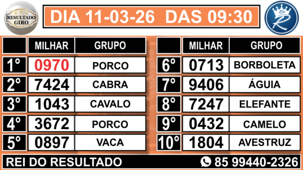1° RESULTADO GIRO PARAÍBA 09:30