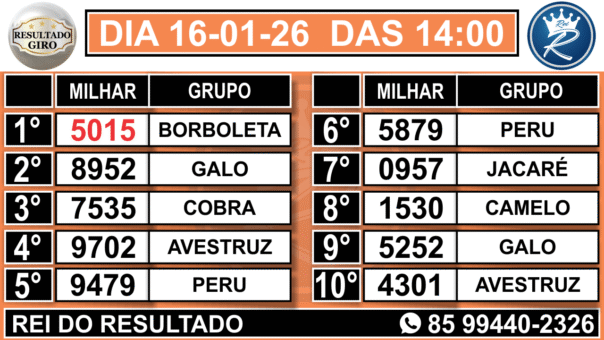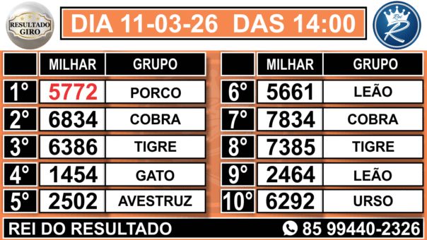 2° RESULTADO GIRO 14:00
