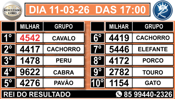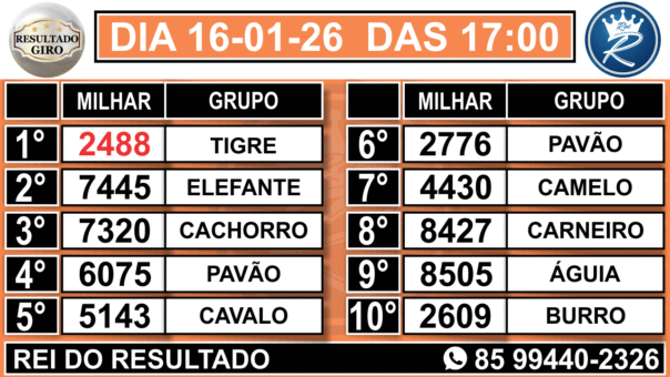 3° RESULTADO GIRO 17:00