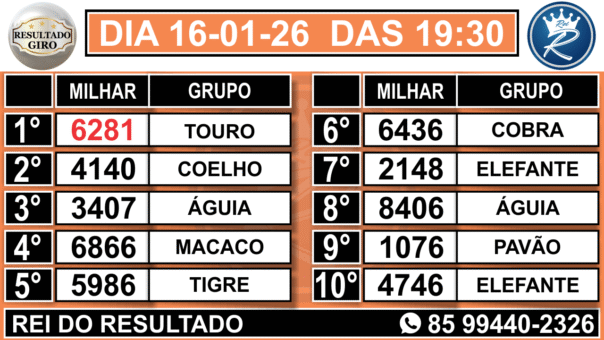 4° RESULTRADO GIRO PARAÍBA 19:30