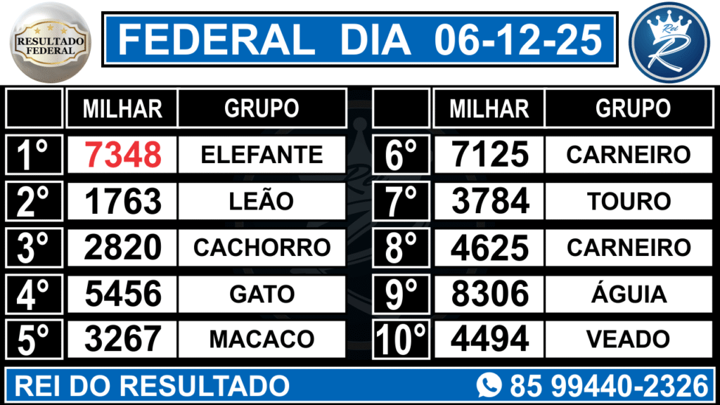 Bem-vindo à página dedicada ao Resultado da Loteria Federal no Rei do Resultado! Aqui você encontra informações atualizadas sobre os sorteios, dados e prêmios, tudo de forma clara, rápida e confiável.