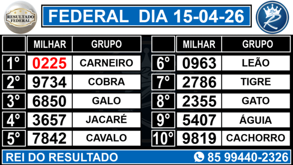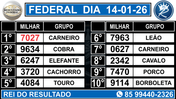 Em conclusão, não importa se você é um apostador experiente ou se está tentando jogar pela primeira vez: o Rei do Resultado é o lugar ideal para conferir os números sorteados da Loteria Federal. Portanto, acompanhe seus números agora mesmo e aumente suas chances de não perder nenhuma premiação.